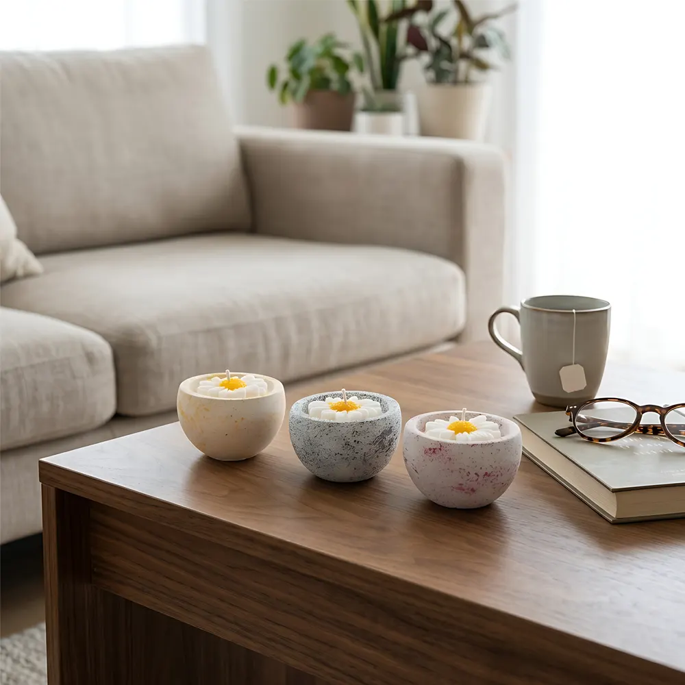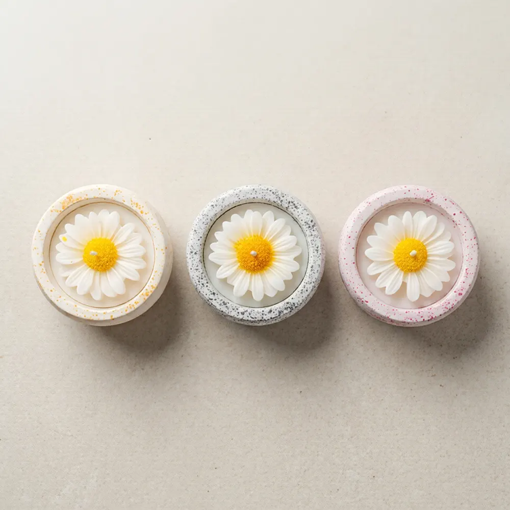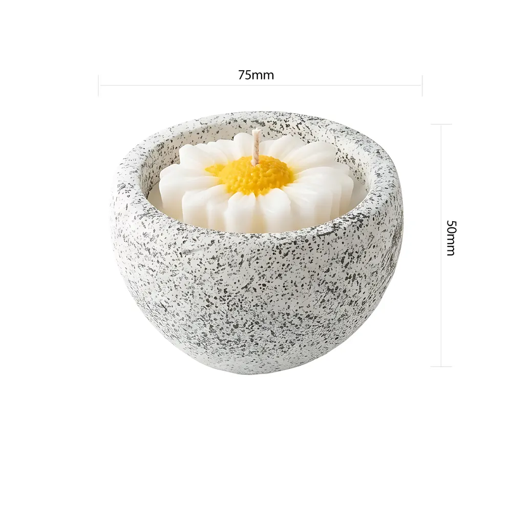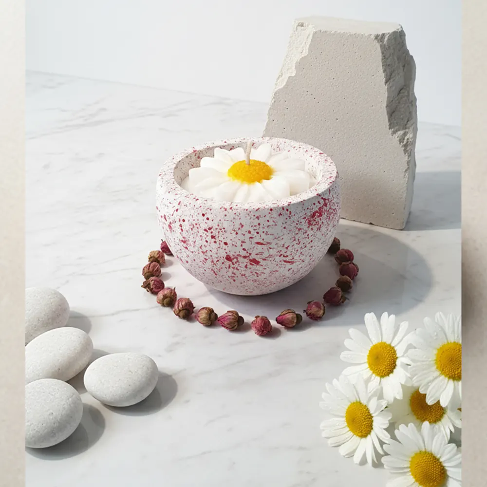 شمع لیوانی بتنی گل بابونه براووآرتس، ترکیبی از طراحی مینیمال و رنگ‌های شیک، انتخابی عالی برای تزئین دکوراسیون خانه شماست. این محصول دست‌ساز از سنگ مصنوعی ساخته شده و با ابعاد مناسب 9x9x6 سانتی‌متر  طراحی شده است.