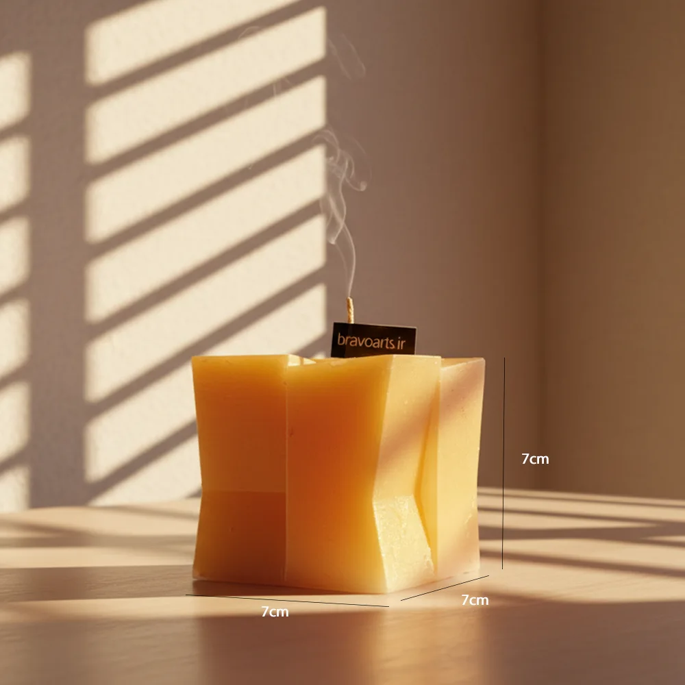 این شمع زیبا با طراحی مینیمال و ابعاد استاندارد ۷×۷×۷ سانتیمتر ساخته شده و از پارافین گیاهی با سوخت پاک تهیه شده است. بهدلیل گیاهی بودن ترکیب، هنگام سوختن بدون دود میسوزد و محیطی سالمتر ایجاد میکند.